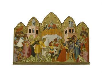 | Keywords: Andrea di Bartolo - Massacre of the Innocents - Walters 371018.jpg Walters Art Museum artwork Creator Andrea di Bartolo Creator Bartolo di Fredi en In an attempt to thwart the prophecy about Christ's rise to power King Herod orders his soldiers to kill all the male infants under the age of two living in Bethlehem They do this with ruthless efficiency Bartolo's color scheme uses naturalistic details to enhance the drama of the scene Note the contrast between the rosy coloring of the infants who are still alive and the green pallor of those already dead This painting which is beautifully preserved was part of a monumental altarpiece commissioned for the Church of San Agostino in San Gimignano and was placed atop a large painting of the Presentation in the Temple now in the Museé du Louvre Paris The Massacre of the Innocents might have been executed by both Bartolo and Andrea active 1389-1428 working collaboratively as a father and son team ca 1380 Medieval tempera gold leaf panel cm 89 2 129 8 3 5 ; Visible painted surface cm 85 126 ; Panel cm 85 4 125 5 accession number 37 1018 29205 Church of Sant'Agostino San Gimignano Malenotti Collection San Gimignano date and mode of acquisition unknown Cardinal Feschi Collection Rome date and mode of acquisition unknown Viscount Bernard d'Hendecourt Collection Paris prior to 1914 mode of acquisition unknown Demotte Paris 1917 mode of acquisition unknown Henry Walters city Baltimore Walters Art Museum Henry Walters Acquired by Henry Walters 1917 Transcription SPQR The International Style The Arts in Europe Around 1400 The Walters Art Gallery Baltimore 1962 Déjà Vu The Repeating Image in Renaissance and Baroque Art The Walters Art Museum Baltimore 2007-2008 place of origin San Gimignano Zeri Italian paintings in the Walters Art Gallery 29 48-50 Walters Art Museum license 2D Medieval art in the Walters Art Museum Andrea di Bartolo Paintings in the Walters Art Museum Media contributed by the Walters Art Museum needs category review |