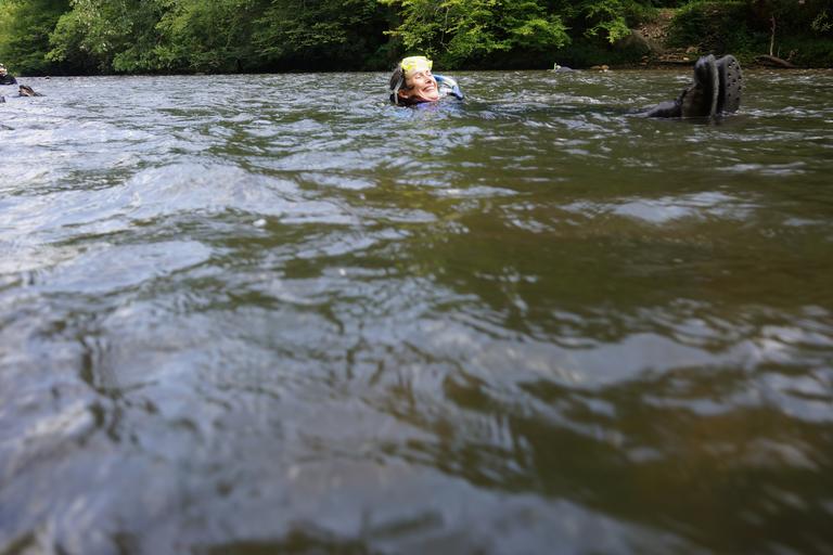 Keywords: u. s. fish and wildlife service usfishandwildlifeservice cherokee snorkel oconaluftee outdoor water landscape creek watercourse stream Aquatic biologists and stream conservationists who work in the Little Tennessee River basin recently came together on the Oconaluftee River, in Cherokee, North Carolina, to learn more about hosting public snorkeling events. Jim Herrig, of the Cherokee National Forest, started public snorkeling programs in the Conasauga River basin as a way to connect people with the incredible diversity of aquatic life in Southern Appalachian streams. This outing was an opportunity for Jim to pass his knowledge on to others, as snorkeling programs emerge across the area. Credit: Gary Peeples/USFWS Aquatic biologists and stream conservationists who work in the Little Tennessee River basin recently came together on the Oconaluftee River, in Cherokee, North Carolina, to learn more about hosting public snorkeling events. Jim Herrig, of the Cherokee National Forest, started public snorkeling programs in the Conasauga River basin as a way to connect people with the incredible diversity of aquatic life in Southern Appalachian streams. This outing was an opportunity for Jim to pass his knowledge on to others, as snorkeling programs emerge across the area. Credit: Gary Peeples/USFWS