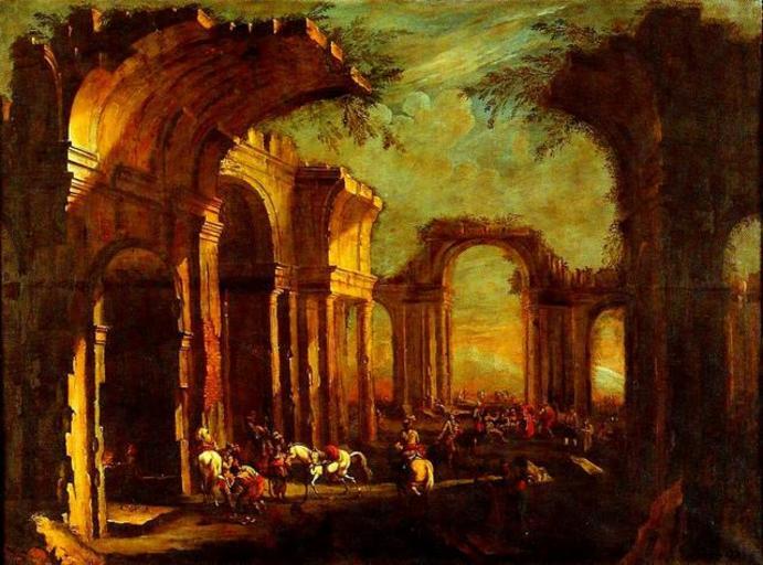 | Keywords: Andrea Locatelli - Ruínas Romanas.jpg Artwork Creator Andrea Locatelli Roman ruins with mounted knights Ruínas romanas com cavaleiros montados century 18 Oil on canvas cm 170 228 MCB Fundação Crespi-Prado Pendant of Classical architecture an obelisk knights ladies and dogs see File Andrea Locatelli - Ruinas Romanas jpg Scan from MCB/Safra catalogue PD-old-100 Other versions Museu da Casa Brasileira Andrea Locatelli Paintings from Italy in Brazil Paintings of ruins 18th-century paintings not categorised by year 18th-century paintings in Brazil Rococo paintings in Brazil |