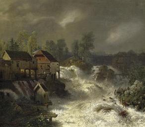 | Keywords: Andreas Achenbach - Die Wasserfälle von Trollhättan in Schweden.jpg Artwork Creator Andreas Achenbach ca 1850 oil canvas cm 38 44 object history credit line A Achenbach 1850 ~ lower left signature and date accession number http //www arcadja com/auctions/en/private/achenbach_andreas/artworks/72/0/ 1 Kunsthaus Lempertz and 2 Van Ham Kunstauktionen via arcadja com PD-old-100 Paintings by Andreas Achenbach Trollhättan Falls 1850s landscape paintings Landscape paintings of Sweden Oil paintings of waterfalls Images from Kunsthaus Lempertz Images from Van Ham Kunstauktionen |