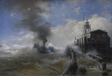 | Keywords: Andreas Achenbach - Ein Schlepper verlässt den Hafen von Ostende bei Flut.jpg Artwork Creator Andreas Achenbach < 1882 oil canvas cm 108 7 155 3 Institution Koninklijk Museum voor Schone Kunsten Antwerpen 1500 Object history Gekocht van de kunstenaar door de Koninklijke Academie voor Schone Kunsten Antwerpen voor het Museum van de Academiekers 1879; in bruikleen gegeven aan het museum http //www kmska be/nl/collectie/catalogus/ Koninklijk Museum voor Schone Kunsten Antwerpen Zoek 1500 http //www lukasweb be/en/photo/towboat-leaving-the-port-of-ostend-at-heyday Lukas - Art in Flanders VZW Other versions PD-old-100-1923 1910 Paintings by Andreas Achenbach German paintings in the Royal Museum of Fine Arts Antwerp Achenbach Andreas Oil paintings of seascapes |