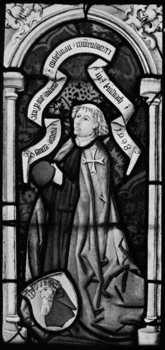 Keywords: AndreasGubelmannBubikon1498i.jpg de Anläſslich des Chorneubaus der Kirch zů Bůbikon im Zürichbiet von der Johanniterkommende geſtiftetes Glasgmäld 73 cm × 34 5 cm mit Bildniſs des Küſsnachter Komturs Andreas Gubelmann Innſchrifft auf dem Spruchbande O ſancta・agatha・Ora・p ro ・me・andrea・gubelman・com̃endatori・in・küſſnach・1498 Hermann Fietz Die Kunſtdenkmäler des Kantons Zürich II Die Bezirke Bülach Dielsdorf Hinwil Horgen und Meilen Baſel 1943 p 158 1498 Lukas Zeiner PD-old-100-1923 Stained glass windows of Reformierte Kirche Bubikon 1498 paintings in Switzerland Paintings in Landesmuseum Zürich Andreas Gubelmann Knights of the Sovereign Military Order of Malta in art Coats of arms of the canton of Zürich Coats of arms on stained glass windows in Switzerland Uploads by User Abderitestatos |
