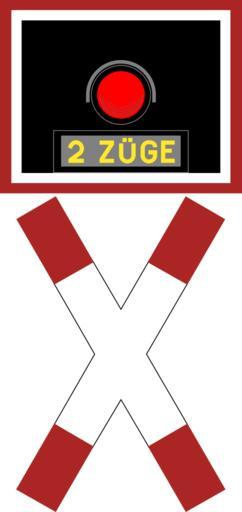| Keywords: Andreaskreuz mit Blinklicht für unbeschrankten mehrgleisigen Bahnübergang - BO 1961.svg de Andreaskreuz mit Blinklicht für unbeschrankten mehrgleisigen Bahnübergang Das Blinklicht mit dem Leuchtschriftzug 2 Züge durfte nur an Wegen ohne einen allgemeinen Kraftwagenverkehr aufgestellt werden Kreuzten zwei Züge den Bahnübergang erschien die Leuchtschrift und der Wecker ertönte In dieser Form wurden die Zeichen am 1 Januar 1961 eingeführt Quelle Bundesgesetzblatt Teil II Nr 61 Bonn am 28 Dezember 1960 S 2421-2423 own Mediatus 2014-08-13 v Cc-zero PD-VzKat Diagrams of railway road signs of Germany 1961 set Diagrams of railway road signs of Germany 1971 set |
