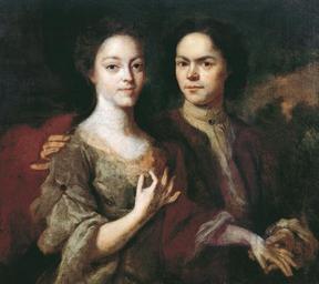 | Keywords: Andrei Matveev - Selfportrait with wife.jpg Artwork Creator Andrei Matveev Self-portrait with wife 1729 Oil on canvas cm 75 5 90 5 Institution Russian Museum http //nearyou ru/matveev/0matveev html other versions PD-old-100 DEFAULTSORT 1729; Andrei Matveev wife Andrei Matveev 18th-century portraits in the Russian Museum 18th-century self-portrait paintings of men 1729 portrait paintings 18th-century family portraits 18th-century oil portraits at half length Right hand on chest in portrait paintings People facing right in art Self-portraits from Russia Self-portraits with wife |