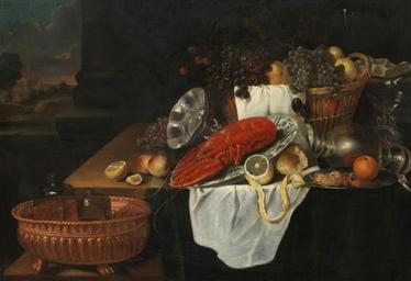 | Keywords: Andries Benedetti - Still life with lobster, fruit and dishes.jpg Artwork Creator Andries Benedetti 1646 Oil on canvas 82 7 x 118 5 cm object history credit line Auctioned at Fischer Auktionen accession number http //www fischerauktionen ch/ueber/highlightZoom aspx oid 107615 highlightCategoryId 9480 PD-old-100 painting still-life Italian 1601-1650 Andries Benedetti Still-Life 1640s still life paintings 17th-century still life paintings of food Paintings of fruit baskets Paintings of globes Jugs in art Rummers in paintings 17th-century still-life paintings of fruits Paintings of lobsters Oil still-life paintings Still-life paintings of globes |