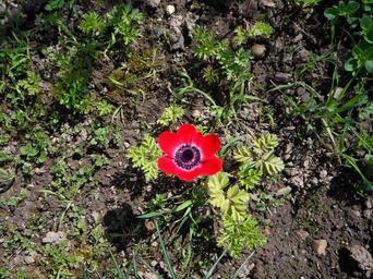 Keywords: anemone lonely red flower bloom blossom bloom garden spring alone isolated