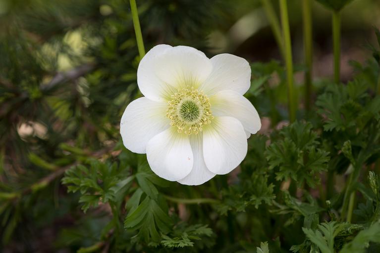 Keywords: anemone white white anemone blossom bloom white blossom garden in the garden nature plant close petals pistil