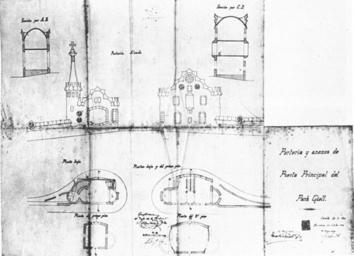| Keywords: Anexos Park Güell.jpg es Planta y alzado de los pabellones de entrada al Parque Güell de Antoni Gaudí 1904 Güell Xavier 1997 Antoni Gaudí Obras y proyectos Gustavo Gili Barcelona ISBN 84-252-1445-9 Creator Antoni Gaudí 1904 Parc Güell PD-old |