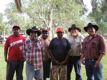| Keywords: Angas Downs Rangers.jpg en Angas Downs rangers at March 2010 - Missing Terry Maloney and Phillip Tucker In the Photo L-R Leslie Pearce David Wongway Paul Pumpjack Leo Armstrong Tim Lander manager and Brad Lander own AWS10 Jenny Smits 2010-03-17 People of the Northern Territory Angas Downs Indigenous Protected Area |