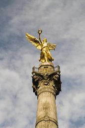 | Keywords: ángel de la independencia ángeldelaindependencia angel angel of independence angelofindependence mexico mexico city mexicocity monument column memorial centennial paseo de la reforma paseodelareforma statue mexican street,urban,city,city,latin america streeturbancitycitylatinamerica megalopolis metropolis architecture outdoor sculpture The Angel of Independence, most commonly known by the shortened name El Ángel and officially known as Monumento a la Independencia ("Monument to Independence"), is a victory column on a roundabout on the major thoroughfare of Paseo de la Reforma in downtown Mexico City. El Ángel was built in 1910 during the presidency of Porfirio Díaz by architect Antonio Rivas Mercado, to commemorate the centennial of the beginning of Mexico's War of Independence. In later years it was made into a mausoleum for the most important heroes of that war. It is one of the most recognizable landmarks in Mexico City, and it has become a focal point for both celebration or protest. It resembles the July Column in Paris and the Berlin Victory Column in Berlin. Reference: en.wikipedia.org/wiki/Angel_of_Independence The Angel of Independence, most commonly known by the shortened name El Ángel and officially known as Monumento a la Independencia ("Monument to Independence"), is a victory column on a roundabout on the major thoroughfare of Paseo de la Reforma in downtown Mexico City. El Ángel was built in 1910 during the presidency of Porfirio Díaz by architect Antonio Rivas Mercado, to commemorate the centennial of the beginning of Mexico's War of Independence. In later years it was made into a mausoleum for the most important heroes of that war. It is one of the most recognizable landmarks in Mexico City, and it has become a focal point for both celebration or protest. It resembles the July Column in Paris and the Berlin Victory Column in Berlin. Reference: en.wikipedia.org/wiki/Angel_of_Independence |
