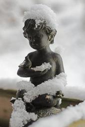 Keywords: angel fig art statue putten angel figure deco winter snow snowed in black white