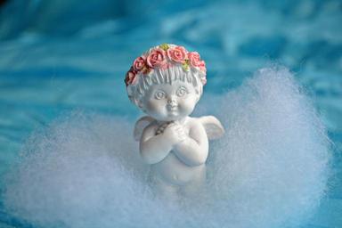 Keywords: angel figurine blue white rosary stone statue cute decoration sweet wings small