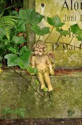 Keywords: angel little angel fig sculpture wing cute sit tombstone grave cemetery old weathered moss ivy inscription tomb inscription mourning commemorate tomb memory
