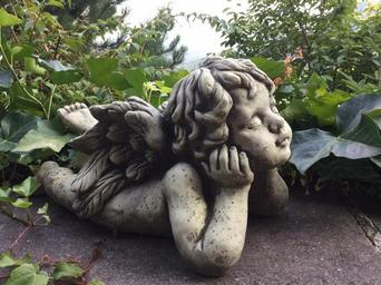 Keywords: angel relaxation garden statuette number stone sleep closed eye reverie child amur