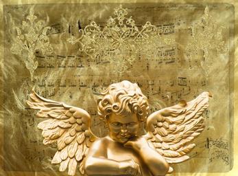 | Keywords: angel wing angel face gold angel figure little angel golden sparkle ornaments glitter background ornament decoration decorative music notenblatt church singing religion gold ornaments pattern deco design texture creative christmas choir church choir |