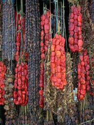 Keywords: Angelmo Cuelgas de Choritos.JPG Angelmo Cuelgas de Mariscos y Choritos Ahumados - Chile own 06 11 06 María Luisa Garrido Dual_licensed under the GFDL Food ingredients of Chile Pyura Mytilus chilensis