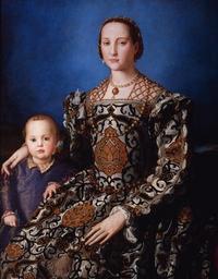 | Keywords: Angelo Bronzino - Eleonora of Toledo with her son Giovanni de' Medici - WGA3247.jpg Bronzino - Eleonora di Toledo col figlio Giovanni - Google Art Project jpg between 1544 1545 Oil wood size cm 115 96 Institution Uffizi object history credit line accession number WGA link 3247 http //www wga hu/art/b/bronzino/1/eleonora jpg http //www wga hu/html/b/bronzino/1/eleonora html PD-old-100 painting portrait Italian 1501-1550 Eleanor of Toledo with her son Giovanni de' Medici by Agnolo Bronzino |