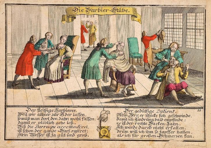 | Keywords: Angenehme Bilderlust c1760 12.jpg Die Barbier-Stube; Tafel aus Anganehme Bilder-Lust der lieben Jugend zur Ergötzung also eingerichtet Nürnberg Monath o J ca 1760 http //www zisska de/ Zisska Schauer ~ 1760 Creator Unknown <gallery> File Angenehme Bilderlust c1760 01 jpg File Angenehme Bilderlust c1760 05 jpg File Angenehme Bilderlust c1760 06 jpg File Angenehme Bilderlust c1760 07 jpg File Angenehme Bilderlust c1760 08 jpg File Angenehme Bilderlust c1760 12 jpg File Angenehme Bilderlust c1760 15 jpg File Angenehme Bilderlust c1760 21 jpg File Angenehme Bilderlust c1760 23 jpg </gallery> PD-old-100 Images from Zisska Schauer 1760s engravings Barbers in art |