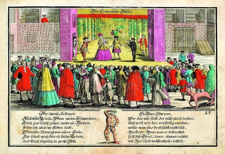 | Keywords: Angenehme Bilderlust c1760 23.jpg Das Comedien-Haus; Tafel aus Anganehme Bilder-Lust der lieben Jugend zur Ergötzung also eingerichtet Nürnberg Monath o J ca 1760 http //www zisska de/ Zisska Schauer ~ 1760 Creator Unknown <gallery> File Angenehme Bilderlust c1760 01 jpg File Angenehme Bilderlust c1760 05 jpg File Angenehme Bilderlust c1760 06 jpg File Angenehme Bilderlust c1760 07 jpg File Angenehme Bilderlust c1760 08 jpg File Angenehme Bilderlust c1760 12 jpg File Angenehme Bilderlust c1760 15 jpg File Angenehme Bilderlust c1760 21 jpg File Angenehme Bilderlust c1760 23 jpg </gallery> PD-old-100 Images from Zisska Schauer 1760s engravings Theatre in art Interiors of theaters in art Theatre audience Commedia dell'arte |