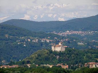 Keywords: Angera Panorama 15.psd.jpg fr Angera ville italienne dans la province de Varèse sur la rive orientale lombarde du lac Majeur <br/> Photographie prise depuis le parvis de l 'église de Taino village situé à 3 5km env au sud-est d'Angera nous regardons donc vers le nord-ouest L'agglomération la plus proche de nous est la ville d'Angera dominée au centre par la forteresse d'Angera rocca di Angera perchée sur un éperon rocheux au nord-ouest de la ville Au-delà de la forteresse à gauche sur la rive opposée du lac Majeur non visible sur la photo village de Dagnente Plus loin de nous encore à droite  le village de Colazza situé à près d'une dizaine de km de notre point de vue Dans le lointain  cimes enneigées des Alpes 2012-08-16 own Torsade de Pointes cc-zero Uploaded with UploadWizard Angera