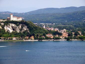 | Keywords: Angera Rocca 27.JPG fr Forteresse d'Angera en italien Rocca di Angera juchée sur son éperon rocheux surplombant la localité italienne d'Angera dans la province de Varèse sur la rive orientale lombarde du lac Majeur Flancs nord à gauche et occidental à droite du château Vue prise au téléobjectif depuis le socle du colosse de Saint-Charles-Borromée en italien colosso di San Carlo Borromeo ou plus familièrement le San Carlone statue géante située en contre-haut et non loin au nord-ouest de la ville d'Arona sur la rive opposée piémontaise du lac Majeur à plus de 2km de distance 2012-07-08 own Torsade de Pointes cc-zero Uploaded with UploadWizard Rocca di Angera |