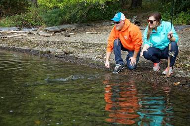 Keywords: anglers man woman fishing catch release catch and release fisherman fish lake nature leisure people water hobby outdoor male recreation fishing rod reel equipment adult angling freshwater relaxation recreational