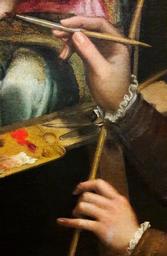 | Keywords: Anguissola Self-portrait at the easel (detail).jpg Artwork Q23009844 Creator Sofonisba Anguissola Self-portrait langswitch an der Staffelei przy sztaludze at the easel 1556 Oil on canvas Institution Łańcut Castle accession number object history between date 2016 6 2 2016 8 28 deposit National Museum in Warsaw credit line Displayed during temporary exhibition Brescia The Renaissance in Northern Italy in the National Museum in Warsaw own PD-old-100 DEFAULTSORT 1556; Self-portrait at the easel Self-portraits by Sofonisba Anguissola Brescia The Renaissance in Northern Italy Portraits in the Łańcut Castle Self Portrait Renaissance to Contemporary Maulsticks Portrait paintings holding paint brushes Renaissance self-portraits of women Self-portraits with artwork People with art materials People with objects in art People at work in art Female hands in art People with artwork Females holding paint brushes Self-portraits with palette |