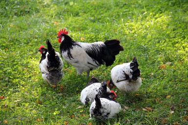 Keywords: animal animals poultry hahn chicken chickens hen meadow way grass idyll
