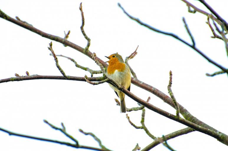 Keywords: animal bird branch close cold color cute erithacus europe european garden image nobody one orange outdoors perching red redbreast robin rubecula snow spring tree vertical white wild wildlife