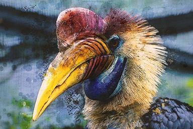 Keywords: animal bird hornbill helmet hornbill moscow world bird park bill nature colorful feathered wildlife wild tropical water colored digital art digital painting