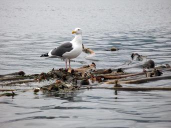 Keywords: animal bird seagull ocean water nature natural cute wild wildlife seaweed floating