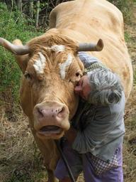Keywords: animal bull fauna peasant woman love kiss agricultural