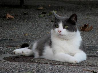 Keywords: animal cat domestic cat dear fur stretched cute grey white