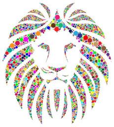 Keywords: animal lion big cat feline king of the jungle africa tribal geometric art colorful circles dots