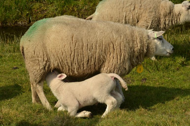 Keywords: animal mammal sheep lamb agricultural farm meadow drinking suckle mother