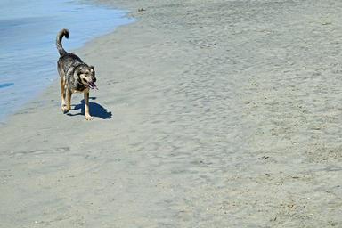 Keywords: animal wet dog pet fun summer canine outdoor ocean cute sand sea happy dog playing