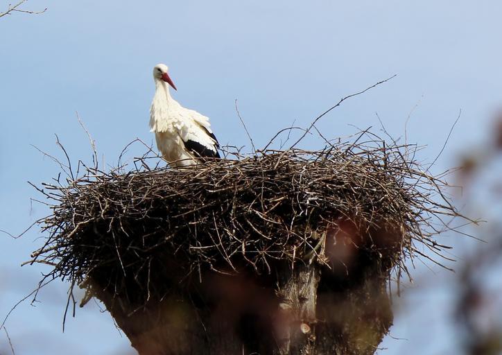 Keywords: animals birds storchennest nest stork rattle stork plumage bill height sky blue