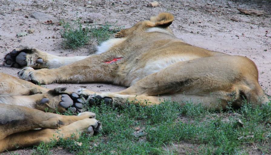 Keywords: animals lion predator zoo lion females lioness injury open wound