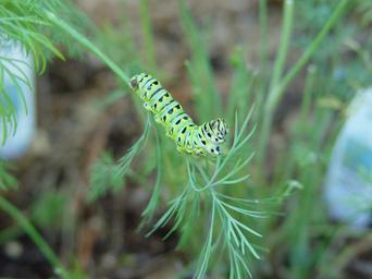 Keywords: Anise swallowtail in Caterpillar stage.jpg en An Anise Swallowtail in late caterpillar stage in a garden in Mill Valley California Own Bento00 2003-09-23 Papilio caterpillar Papilio zelicaon