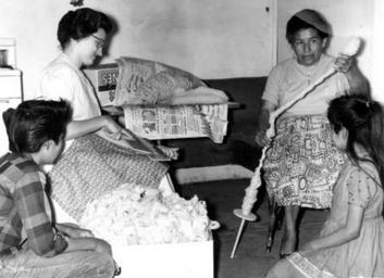 | Keywords: voluntary service voluntaryservice mennonite board of missions mennoniteboardofmissions winslow arizona winslowarizona indian center indiancenter anita beidler anitabeidler wool polly curley pollycurley navajo people blackandwhite monochrome indoor black and white Caption: 1964. Anita Beidler, volunteer from Doylestown, PA, trys her hand at carding wool, the first step in making wool yarn. Polly Curley, Winslow, AZ, is doing the second step, spinning the carded wool into thick yarn on a Navajo spinning wheel. Citation: Mennonite Board of Missions. Photographs. Winslow, Arizona, Voluntary Service Units, 1900-1970. IV-10-7.2 Box 2 Folder 2, photo #12. Mennonite Church USA Archives - Goshen. Goshen, Indiana. Caption: 1964. Anita Beidler, volunteer from Doylestown, PA, trys her hand at carding wool, the first step in making wool yarn. Polly Curley, Winslow, AZ, is doing the second step, spinning the carded wool into thick yarn on a Navajo spinning wheel. Citation: Mennonite Board of Missions. Photographs. Winslow, Arizona, Voluntary Service Units, 1900-1970. IV-10-7.2 Box 2 Folder 2, photo #12. Mennonite Church USA Archives - Goshen. Goshen, Indiana. |