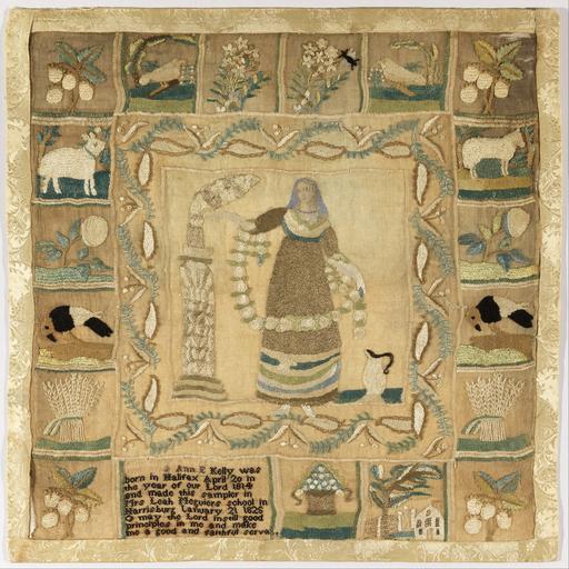 | Keywords: Ann E. Kelly - Sampler - Google Art Project.jpg 1814 1814 Ann 6717270 E Kelly 1814 - 1814 /collection/cooper-hewitt-national-design-museum/artwork/sampler-ann-e-kelly/4174967/ 75182 Ann E Kelly /artist/ann-e-kelly/6829568/ 6829568 /collection/cooper-hewitt-national-design-museum/ Cooper-Hewitt National Design Museum 3644669 http //www cooperhewitt org/ 3/11/2012 5 42 41 PM /collection/cooper-hewitt-national-design-museum/artwork/sampler-ann-e-kelly/4174967/ 1828 1828 Medium silk embroidery cotton foundation painted paperTechnique embroidered in chain buttonhole satin and cross stitches on plain weave foundation By 1941 Mrs Henry E Coe Eva Johnston Coe 1941 Museum for the Arts of Decoration of the Cooper Union 490 4174967 False 1828 3/25/2012 4 59 31 AM 1941-69-119 http //collection cooperhewitt org/view/objects/asitem/id/75182 Bequest of Mrs Henry E Coe Sampler 1820 1830 w490 x h490 cm 1828 False 1 Object sampler-ann-e-kelly Sampler s 490 Ethel Stanwood Bolton and Eva Johnston Coe American Samplers Boston The Massachusetts Society of the Colonial Dames of America 1921 183 Plate XCVII H x W 48 9 x 48 9 cm 19 1/4 x 19 1/4 in Ann E Kelly was born in Halifax April 20 in the year of our Lord 1814 and made this sampler in Mrs Leah Meguier's school in Harrisburg January 21 1828 Medium silk embroidery cotton foundation painted paperTechnique embroidered in chain buttonhole satin and cross stitches on plain weave foundation By 1941 Mrs Henry E Coe Eva Johnston Coe 1941 Museum for the Arts of Decoration of the Cooper Union special url_id mwEOiDQ846iyjg PD-old-100-1923 1814 Google Art Project works by Ann E Kelly Textiles in the Cooper “Hewitt Smithsonian Design Museum 1820s samplers Google Art Project works in Cooper-Hewitt Smithsonian Design Museum 1828 works |
