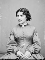 | Keywords: Anna Elizabeth Dickinson - Brady-Handy.jpg Anna E Dickinson - circa 1860s hair fashion Library of Congress Prints and Photographs Division Brady-Handy Photograph Collection http //hdl loc gov/loc pnp/cwpbh 02348 CALL NUMBER LC-BH82- 5035 B <P P>P P between 1855 1865 Creator Mathew Brady PD LOC-image cwpbh 02348 Anna Elizabeth Dickinson October 28 1842 1932 was an orator and lecturer An advocate for the abolition of slavery and women's suffrage as well as a gifted teacher Dickinson was the first woman to speak before the United States Congress A gifted speaker at a very young age she aided the Republican Party in the hard-fought 1863 elections and significantly influenced the distribution of political power in the Union just prior to the Civil War Dickinson also was the first white woman on record to climb Colorado ™s Longs Peak in 1873 This summary was created using Commons SumItUp PD-old-100 en Anna_Elizabeth_Dickinson Black and white photographs of sitting women Photographs by Mathew Brady Dickinson Anna Elizabeth 1873 portrait photographs Portrait photographs of women at half length Women with curls 1860s circa Women looking left Black and white photographs of smiling women Fashion in 1873 Anna Elizabeth Dickinson |