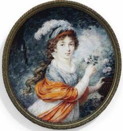 | Keywords: Anna Fedorovna by A.C.Ritt (priv.coll)..jpg Anna Feodorovna 1781-1860 Grand Duchess Constantine of Russia née Princess Juliane of Saxe-Coburg-Saalfield in white dress with blue jacket and white underdress red shawl small gold hoop earring and triple gold chain necklace wearing a red blue and white bandeau in her long flowing curling brown hair adorned with a white ostrich feather; arranging pale pink roses in an urn foliate background signed 'Ritt' lower left on ivory 4 1/16 in 103 mm diam gilt-metal frame with easel stand Lot 210 AUGUSTIN-CHRISTIAN RITT RUSSIAN 1765-1799 Centuries of Style Silver European Ceramics Portrait Miniatures and Gold Boxes by Christie's November 27 2012 London United Kingdom Provenance Christie's Geneva 28 April 1976 lot 107 Robert D Brewster 1916-1995 Collection New York; Sotheby's London 14 December 1995 lot 67 Literature G N Komelova Augustin Ritt Russian Miniaturist 1765-1799 Life and Art St Petersburg 2004 illustrated p 155 no 82 of the catalogue raisonné and listed in the artist's fee book for 1798 http //www christies com/lotfinder/paintings/augustin-christian-ritt-5628347-details aspx from searchresults intObjectID 5628347 sid 508ad308-00e4-40e6-abd2-c9fea5d4840b century 19 creator Augustin Christian Ritt Augustin Christian Ritt Files uploaded by Shakko from various sources Images from Christie's Anna Fedorovna of Russia in portrait miniatures PD-old-100 |
