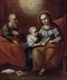 Keywords: Anna unterrichtet Maria Deutsch 18 Jh.jpg Die hl Anna unterrichtet Maria dazu der Hl Josef und das Auge Gottes Deutsche Schule 18 Jh Öl auf Leinwand ca 109 5 x 90 cm restauriert Holzrahmen des 19 Jhdts rückseitig beschriftet von Hand des 18 Jhdts Franziscus Würz anno 1766 1766 Oil on canvas cm 109 5 90 http //www dorotheum com Dorotheum other versions PD-old-100 Images from Dorotheum Paintings of Education of Virgin Mary 1766 paintings 18th-century paintings of Virgin Mary