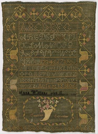 | Keywords: Anna Williams - Sampler - Google Art Project.jpg Anna 6718077 Williams /collection/cooper-hewitt-national-design-museum/artwork/sampler-anna-williams/4165534/ 75232 Anna Williams /artist/anna-williams/6826653/ 6826653 /collection/cooper-hewitt-national-design-museum/ Cooper-Hewitt National Design Museum 3644669 http //www cooperhewitt org/ /collection/cooper-hewitt-national-design-museum/artwork/sampler-anna-williams/4165534/ 1806 1806 Medium silk embroidery linen warp wool weftTechnique embroidered in cross chain rococo and eyelet stitches on plain weave foundation By 1941 Mrs Henry E Coe Eva Johnston Coe 1941 Museum for the Arts of Decoration of the Cooper Union 410 4165534 False 1806 1941-69-17 http //collection cooperhewitt org/view/objects/asitem/id/75232 Bequest of Mrs Henry E Coe Sampler 1800 1810 w290 x h410 cm 1806 False 0 73046875 Object sampler-anna-williams Sampler s 290 Ethel Stanwood Bolton and Eva Johnston Coe American Samplers Boston The Massachusetts Society of the Colonial Dames of America 1921 242 H x W 41 x 29 cm 16 1/8 x 11 7/16 in New York New York Cooper-Hewitt Museum Embroidered Samplers in the Collection of the Cooper-Hewitt Museum 1984 Anna Williams age 11August 13 1806Taunton September Medium silk embroidery linen warp wool weftTechnique embroidered in cross chain rococo and eyelet stitches on plain weave foundation By 1941 Mrs Henry E Coe Eva Johnston Coe 1941 Museum for the Arts of Decoration of the Cooper Union special url_id IwFPp4FnPMCtWw PD-old-100 Google Art Project works by Anna Williams Textiles in the Cooper “Hewitt Smithsonian Design Museum 1800s samplers Google Art Project works in Cooper-Hewitt Smithsonian Design Museum 1806 works |