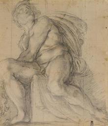 | Keywords: Annibale Carracci - Study for an ignudo - Google Art Project.jpg black chalk heightened with white squared up for enlargement in black chalk on faded blue paper; laid down Collection of Sir Thomas Lawrence 1769 “1830 Lugt 2445 2446 ; his collection sold by Samuel Woodburn 1786 “1853 London to Lord Francis Egerton 1800 “57 1st Earl of Ellesmere Lugt 2710B ; by descent to John Egerton 1915 “2000 5th Earl of Ellesmere and 6th Duke of Sutherland; Ellesmere sale Sotheby's London 11 July 1972 no 66; from where purchased for the NGV 1972 special url_id pwHK8GoG7DRdQA PD-old-100-1923 1609 Drawings by Annibale Carracci Google Art Project works by Annibale Carracci National Gallery of Victoria - Western painting Drawings of nude sitting males |