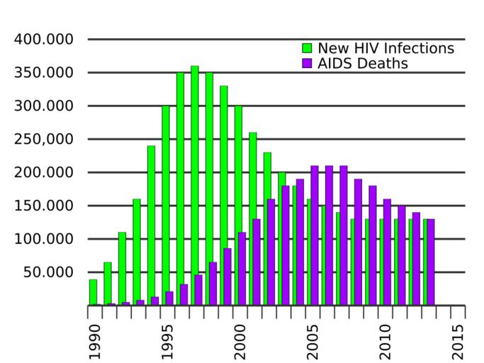 Keywords: Annual India AIDS deaths.svg translate yes en New HIV infections each year and AIDS deaths occurring during the year in India; data from http //www unaids org/en/media/unaids/contentassets/documents/document/2014/2014gapreportslides/HIV2013Estimates_1990-2013_22July2014 xlsx UNAIDS GAP Report 2014 2014-10-19 own Delphi234 other versions cc-zero AIDS statistics HIV/AIDS in India Uploaded with UploadWizard |