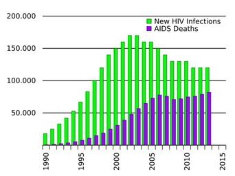 MAKE A MEME View Large Image Annual Mozambique AIDS deaths.svg translate yes en New HIV infections each year and AIDS deaths occurring during the year in Mozambique; data from http //www unaids org/en/media/unaids/contentassets/documents/document/2014/...