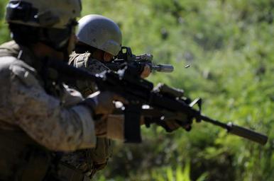 | Keywords: Annual training 140815-N-AX577-101.jpg en Marine Staff Sgt Matt Pellow of Oakland Calif a team leader with 4th Force Reconnaissance Company 2nd platoon fires an M-4 carbine while Marine Sgt J Sevilla of San Bernardino County Calif an assistant team leader also assigned to 4th Force Reconnaissance Company 2nd platoon prepares to fire his M-4 carbine during a reactive shooting drill at the Kaneohe Bay Range Training Facility Aug 15 2014 The drill was part of a two-week annual training period when more than 130 4th Force Reconnaissance Company Marines conducted exercises including live fire and demolition small boat operations and scout swimming and infiltration and ambush The annual training period culminated in two days of full mission profiles that combined all the training elements into day and night operations for each platoon U S Navy photo by Chief Mass Communication Specialist Patrick Dille Navy Reserve Navy Public Affairs Support Element-West/RELEASED 2014-08-15 Chief Petty Officer Patrick Dille https //www dvidshub net/image/1518919 140815-N-AX577-101 2014-08-22 21 37 MARINE CORPS BASE HAWAII HI US PD-USGov-Military-Navy Marine Corps Base Hawaii Images from DoD uploaded by Fæ Photographs by Patrick Dille |