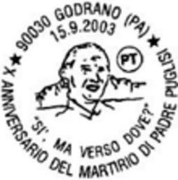 | Keywords: Annullop3.gif Annullo speciale per la commemorazione del X Anniversario del martirio di Padre Puglisi - 15 settembre 2003 - Godrano PA http //www fsfi it/annulli/2003/annulli1703 htm 2003-09-15 Ramas7 Disegno Vincenzo Viscardi Postmarks of Italy Godrano Giuseppe 'Pino' Puglisi 2003 postmarks |